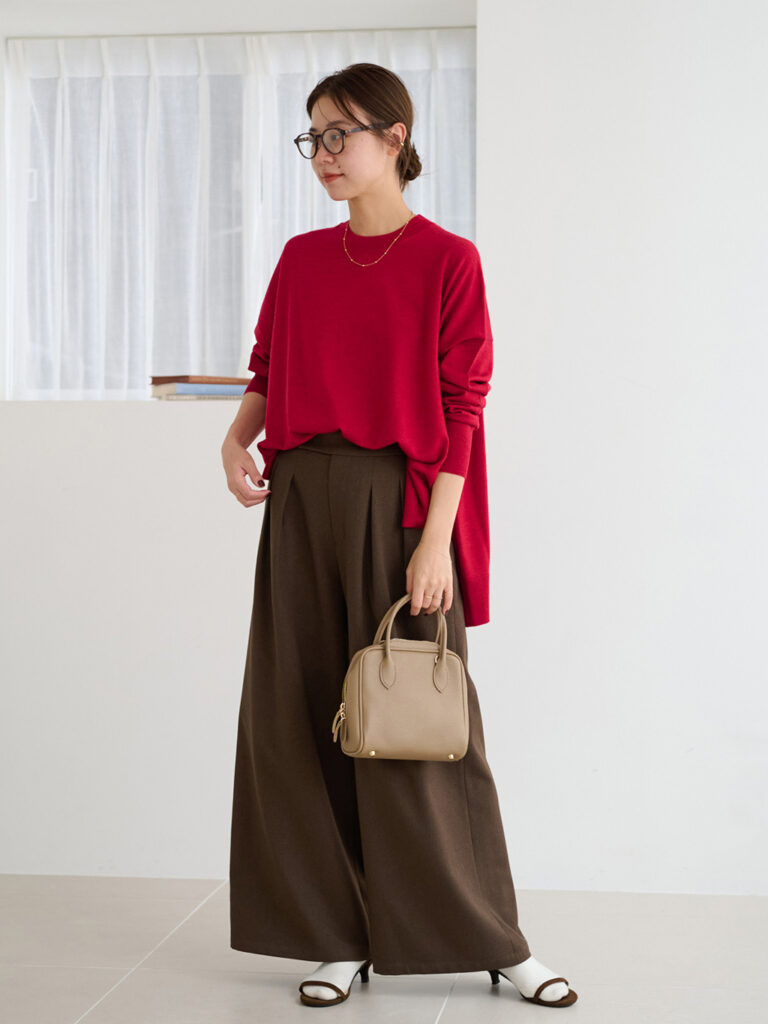 オフィスでも人気! 30代女子がワイドパンツで作るきれいめスタイル