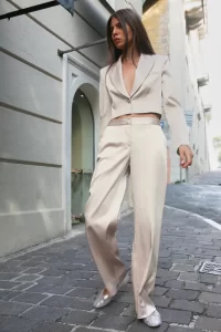 また、素材選びも大切です。しわになりにくい素材を選ぶことで、着ている間も清潔感をキープしやすくなります。夏には薄手の素材、冬には少し厚みがあり、ふんわりとした素材が快適でおすすめです。オフィスでは、シワや静電気が発生しにくいウールやコットン混紡の素材が適しています。さらに、カーディガンのシルエットも注目しましょう。ダボついたデザインではなく、体にほどよくフィットし、スッキリとしたラインが出るものがベストです。